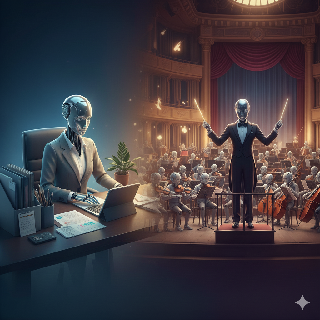 AIの進化は、個々のタスクをこなす「アシスタント」から、複数のAIを連携させ、複雑なタスクを自律的に遂行する「オーケストラ指揮者(エージェント)」へとシフトしています。